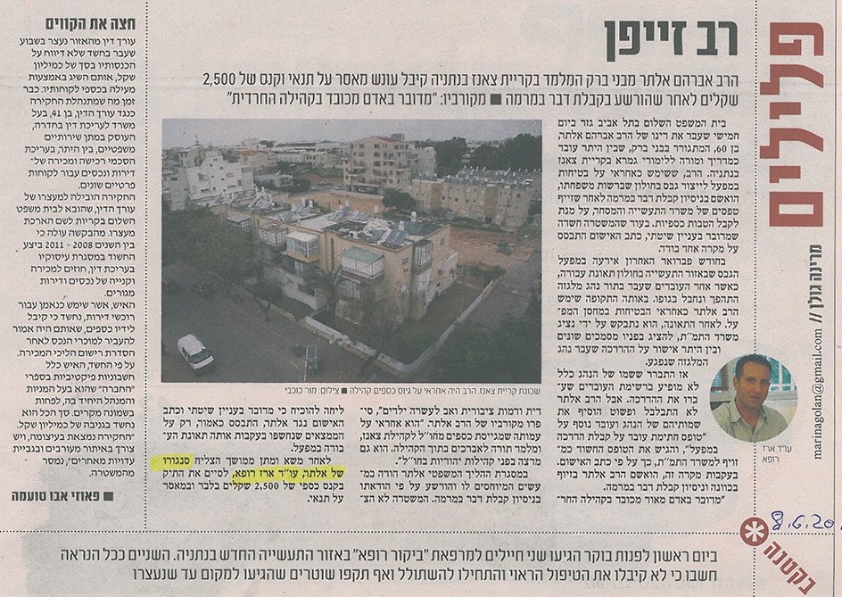 כתבה על עו"ד תעבורה ארז רופא בנושא זייפן